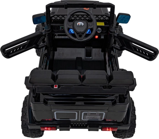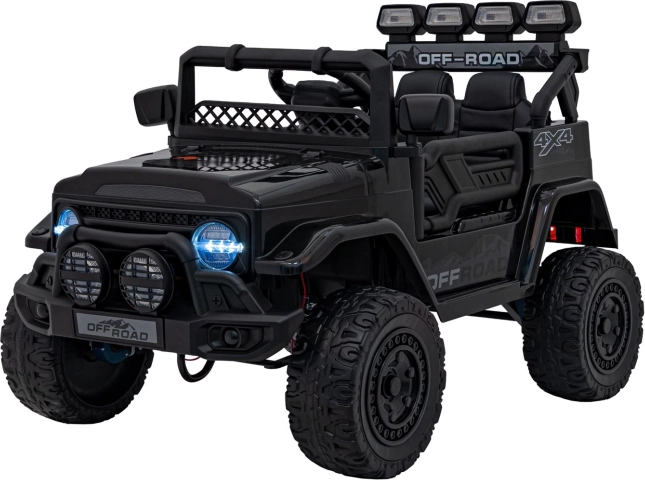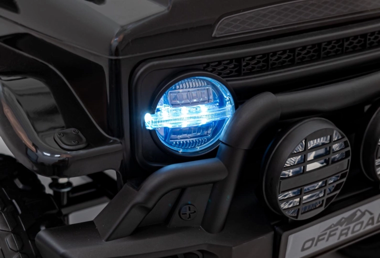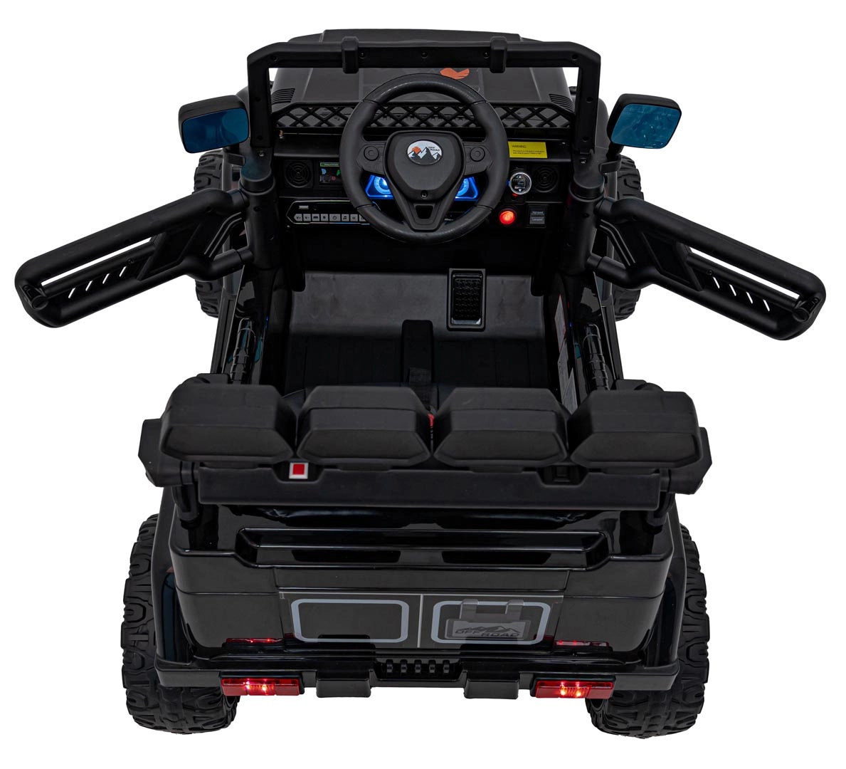 - Komfort und Stil: weicher Kunstledersitz, LED-Lichter vorn/hinten + Dachscheinwerfer, öffnende Türen.