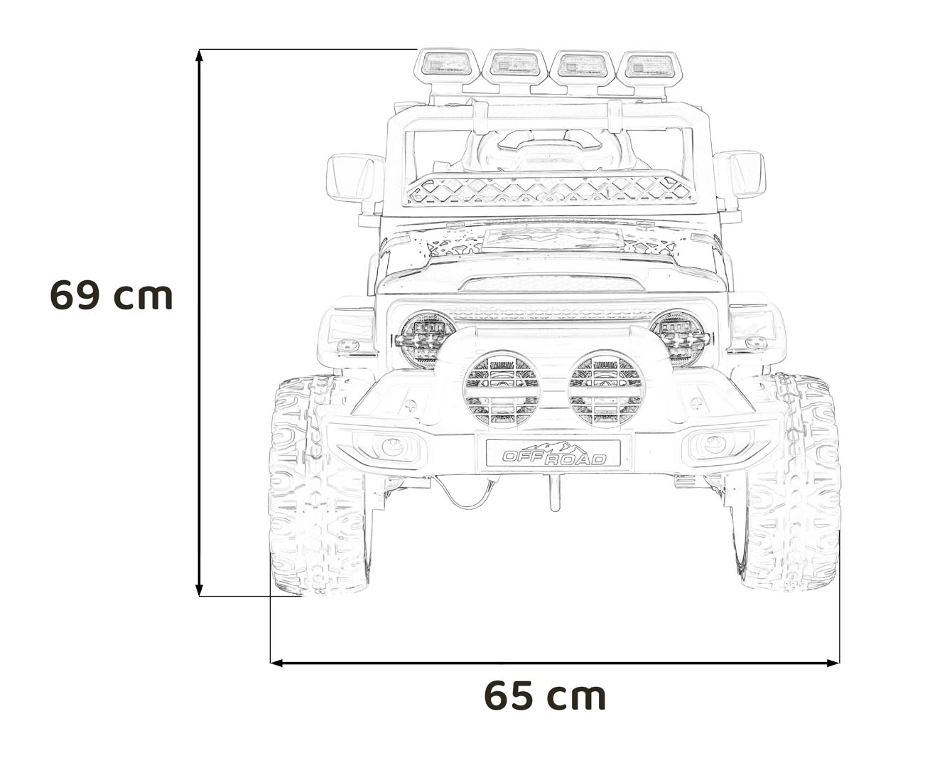 Der Off-Road Climber ist die ideale Wahl für Fahrten im Garten und auf befestigten Wegen. Die großen EVA-Schaumräder mit hohem Profil und hintere Stoßdämpfer gewährleisten eine komfortable und stabile Fahrt, während LED-Lichter und Dachscheinwerfer die Attraktivität und Sicherheit bei schlechten Lichtverhältnissen erhöhen.