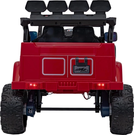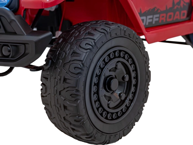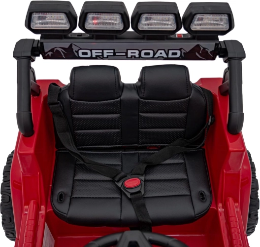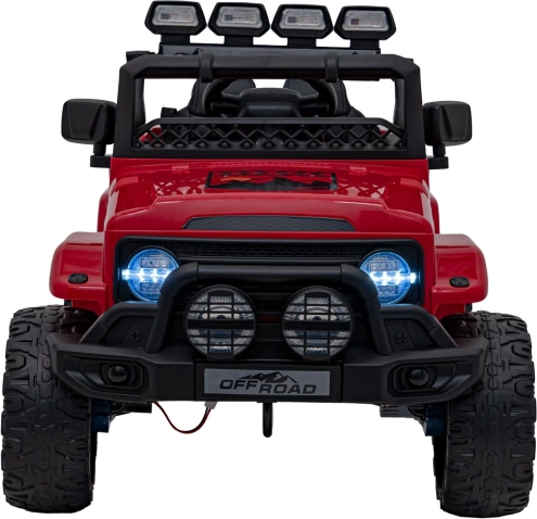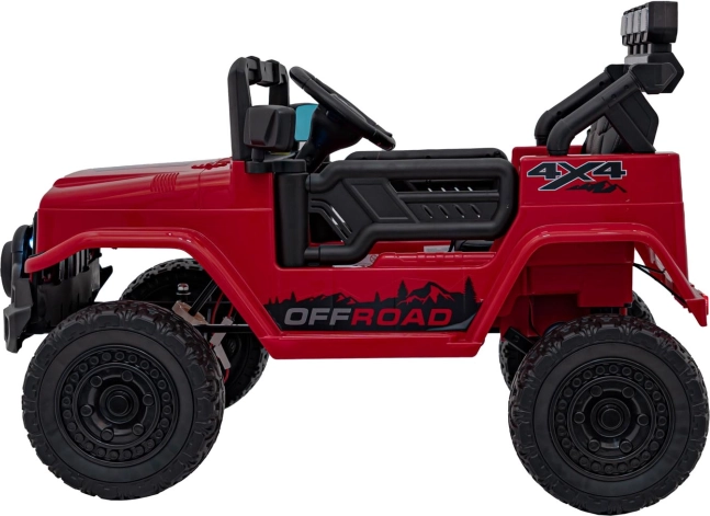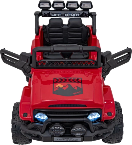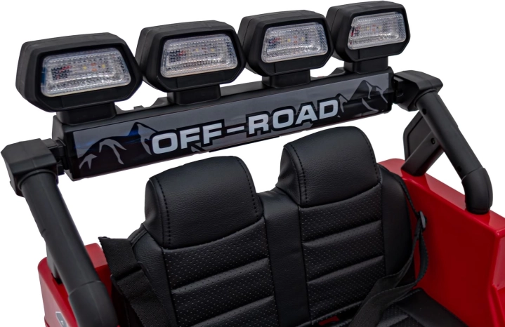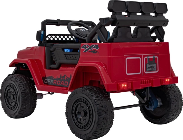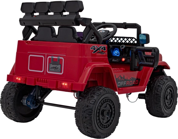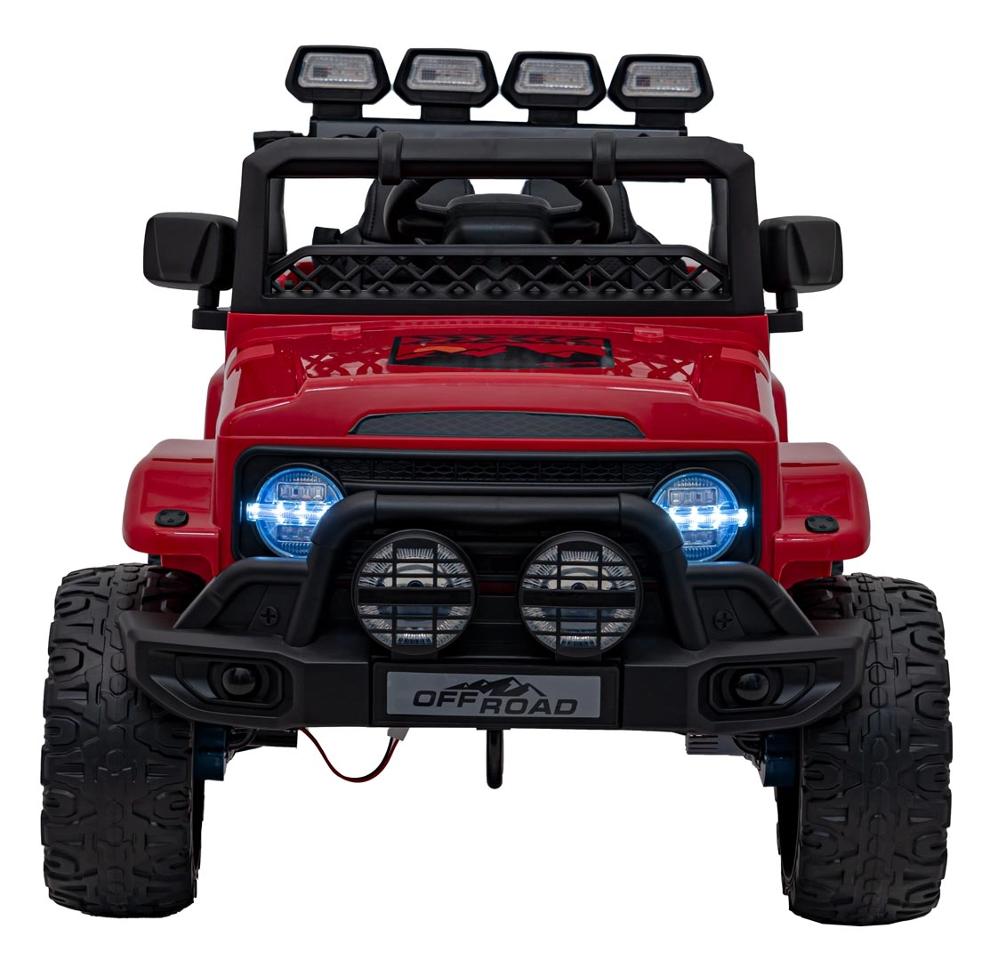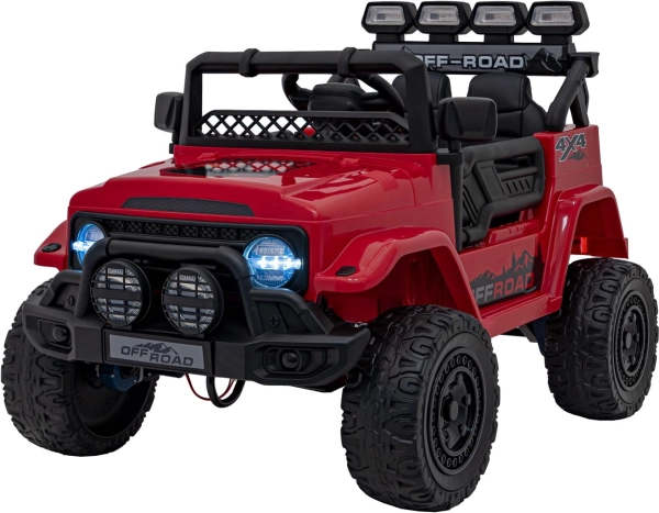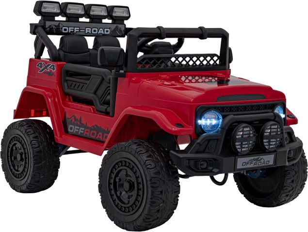 Das geländegängige Kinderauto Off-Road Climber 12V sorgt für großen Spaß zu Hause und draußen. Es verfügt über starke Motoren, weiche EVA-Räder, einen Sitz aus Kunstleder mit Gurten sowie LED-Beleuchtung vorne, hinten und auf dem Dach. Dank sanftem Anfahren, 2.4G‑Fernbedienung mit Sicherheitstaste Stop und Audio-Panel mit USB/MP3/Bluetooth ist die Fahrt sicher und unterhaltsam.