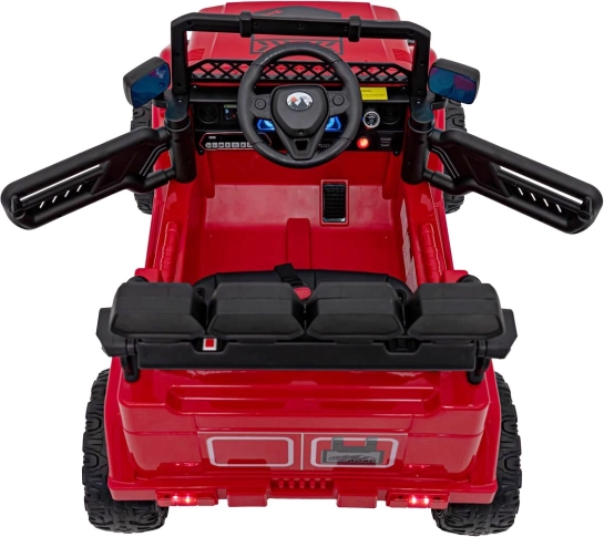 - Entertainment an Bord: Audio‑Panel (USB/MP3/Bluetooth/AUX), Hupe und Melodien am Lenkrad, umfangreiche LED‑Beleuchtung.