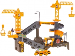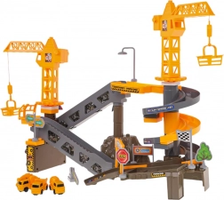 Bauen Sie Ihre eigene, lebhafte Baustelle mit zwei funktionsfähigen Kränen, Drehelementen und einem Aufzug für die Autos. Förderschienen befördern die Fahrzeuge nach oben, über Rampen fahren sie wieder hinab – die ideale Kombination aus Action und fantasievollem Spiel. Die Teile bestehen aus robustem Kunststoff und fallen dank kräftiger Farben sofort ins Auge.
