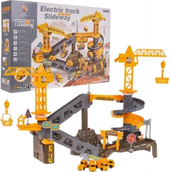 Interaktive Baustellen-Spielbahn für kleine Baumeister ab 3 Jahren bietet stundenlangen, kreativen Spielspaß. Das Set mit 44 Teilen enthält zwei drehbare Kräne mit Hebehaken, elektrische Steigschienen für 3× AA-Batterien (nicht enthalten), spaßige Abfahrtsrampen und ein Set Baustellenfahrzeuge. Hochwertiger Kunststoff in lebendigen Farben fördert Fantasie und Feinmotorik.