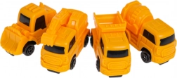 44 Bauteile; 8 Baustellenfahrzeuge (z. B. 2× Bagger, Kipper, Betonmischer); 4× Verkehrszeichen; Schranke; 2× Korb; Aufkleber; Anleitung