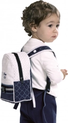 Der Wagen besticht durch elegantes spanisches Design mit gesteppten Details und Holzoptik an den Griffen. Mit dabei sind ein sicherer Dreipunktgurt, weiche Polsterung und ein großzügiger Korb für alles Wichtige. Ebenfalls enthalten ist ein stilvoller Rucksack, der am Wagen befestigt oder auf dem Rücken getragen werden kann.