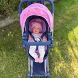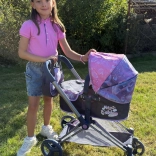 Der Wagen bietet durchdachte Details für komfortables Spiel: ein Dreipunkt-Gurtsystem zur sicheren Befestigung der Puppe, ein verstellbares Verdeck als Sonnenschutz, eine Wannenabdeckung mit Klettverschluss zum schnellen Aufsetzen sowie einen geräumigen unteren Korb für Kleinigkeiten. Ebenfalls enthalten ist eine stylische runde Tasche in den Farben der Kollektion, die perfekt zum verspielten Blasenmotiv passt.