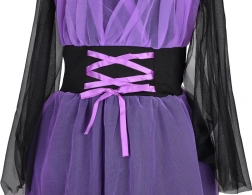 Verwandeln Sie Ihre kleine Fashionista in eine geheimnisvolle Hexe. Das Kleid in Schwarz-Lila mit luftiger Tülllage und dekorativer Schnürung am Mieder schafft ein auffälliges, dennoch bequemes Kostüm. Der leichte Stoff trägt sich angenehm und schränkt die Bewegung nicht ein – ideal für stundenlangen Partyspaß.