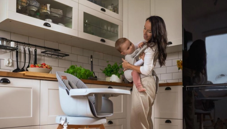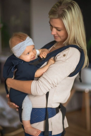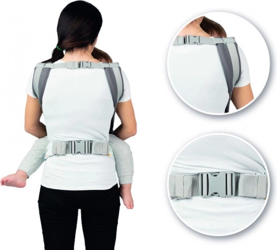 Das breite, verstellbare Panel hält den Rücken des Babys in der richtigen Rundung und sorgt für die ergonomische M-Position der Beinchen für eine sichere Hüftentwicklung.