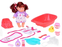 Diese interaktive Babypuppe mit blauen Augen und langem kastanienbraunem Haar fördert die Fantasie und die Pflegekompetenzen der Kinder. Dank des weichen Gummikopfs und des Kunststoffkörpers wirkt sie beim Spielen angenehm und realistisch. Kinder können ein Bad in der mit Wasser gefüllten Wanne vorbereiten, der Puppe den Bademantel anziehen und sich um die täglichen Rituale kümmern.