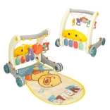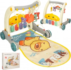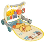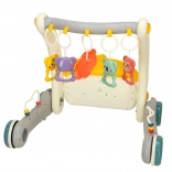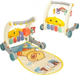 Diese smarte Lösung kombiniert eine bequeme Spielmatte für Babys in Bauch- und Rückenlage und verwandelt sich später in einen stabilen Lauflernwagen für die ersten Schritte. Dank der Hänge-Spielzeuge und des Musikklaviers entwickelt das Kind auf natürliche Weise Sehen, Tastsinn, Hörvermögen und Hand-Auge-Koordination.