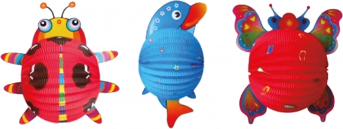 Lampion Kugel Tiere 24 cm mit fünf verschiedenen Tiermotiven für Kinderfeste und Partys.
