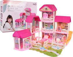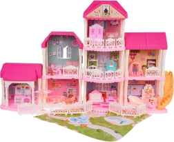 Großes rosa Puppenhaus für Kinder ab 3 Jahren mit vollständiger Ausstattung und Figuren. Ein tolles Spielzeug zur Förderung der Fantasie und Kreativität kleiner Prinzessinnen.