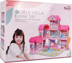 Entdecken Sie das schöne und große rosa Puppenhaus, ideal für Kinder ab drei Jahren. Dieses märchenhafte Puppenhaus besteht aus 4 separaten Modulen, die nach Belieben kombiniert werden können. Das Puppenhaus bietet ein vollständig ausgestattetes Wohnzimmer, ein Badezimmer, ein Schlafzimmer, eine Küche und eine Garderobe. Ein Kinderzimmer und eine Außenzone zum Entspannen dürfen natürlich nicht fehlen.