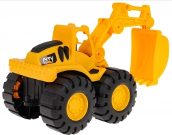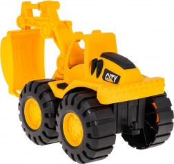 Der Bagger hat eine manuell bewegliche Schaufel und einen Arm, die eine Bedienung wie bei einer echten Maschine ermöglichen. Große Räder des Baggers erlauben Bewegung auf jeder Oberfläche. Im Set ist auch ein Helm enthalten, der ein echtes Bauarbeitergefühl verleiht.