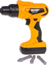 Die realistische Bohrmaschine schraubt ein und aus, erzeugt Geräusche, hat wechselbare Bits (Schlitz, Kreuz, Bohrer) und einen abnehmbaren „Akku“. Stromversorgung: 2× AA 1,5 V (nicht enthalten).