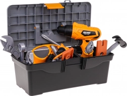Dieses Kinder-Werkzeugset bietet alles, was ein kleiner Heimwerker braucht: einen großen Werkzeugkoffer, Schutzbrille und Maske, Hammer, Schraubendreher, Zangen, Schlüssel sowie Bauteile mit Schrauben und Dübeln. Dank hochwertigem Kunststoff ist das Set leicht, robust und ideal für Spiel wie bei den Profis.