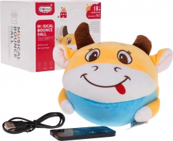 Die fröhliche hüpfende Kuh ist ein weiches interaktives Plüschtier für die Kleinsten. Im Inneren befindet sich ein herausnehmbares rundes Funktionsmodul, dank dem sie nach dem Einschalten hüpft, sich bewegt und Melodien spielt und zugleich mit grüner Hintergrundbeleuchtung leuchtet. Die Bedienung wird durch die mitgelieferte Fernbedienung erleichtert, die Stromversorgung übernimmt ein wiederaufladbarer Akku mit Aufladung über USB.