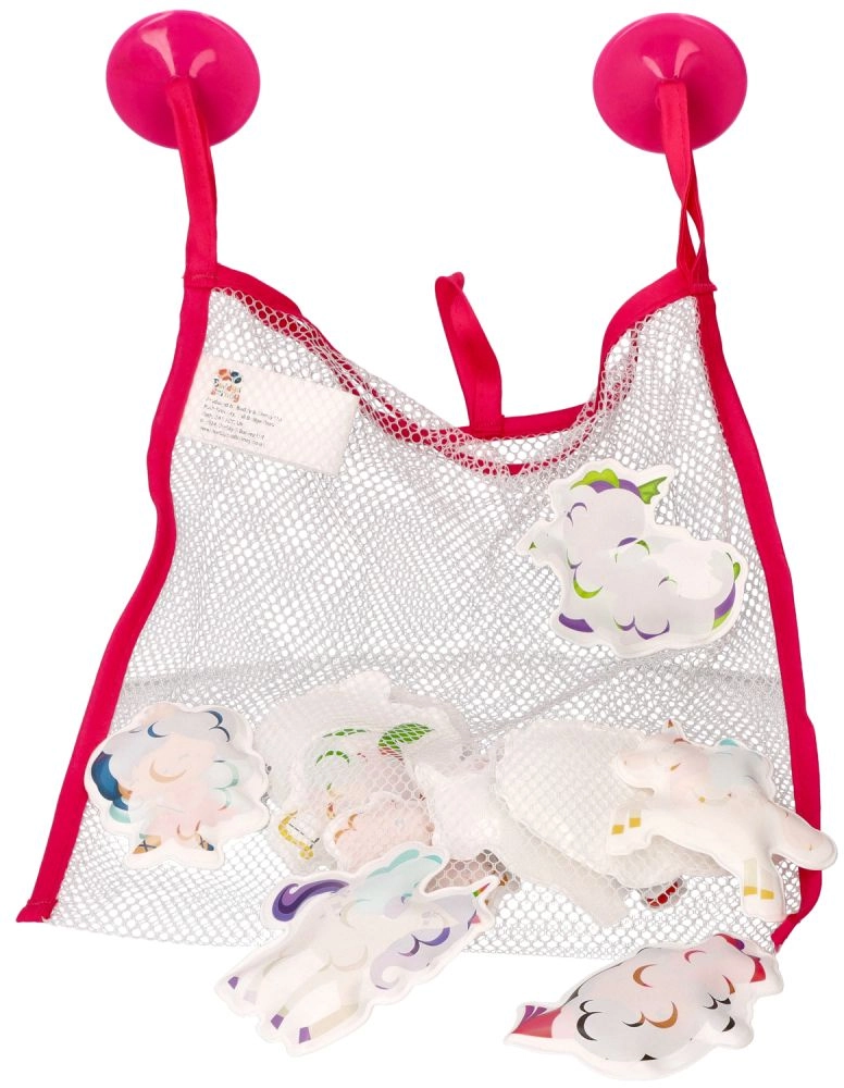Das Set aus lustigen Schaumstoff-Stickern mit Motiven von Einhörnern, Zauberern und Wölkchen bringt jede Menge Fantasie in die Badewanne. Beim Kontakt mit Wasser ändern die Sticker ihre Farbe und haften perfekt auf glatten, nassen Oberflächen (Wanne, Fliesen). Nach dem Spiel lassen sie sich bequem im atmungsaktiven Netz mit Saugnäpfen verstauen, das schnelles Abtropfen und Trocknen ermöglicht.