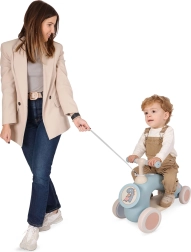 Durchdachte Details erhöhen Komfort und Sicherheit: drehbare Lenker mit Schutz vor eingeklemmten Fingern, weiche gummierte Griffe und leise Räder für eine sanfte Fahrt. Die Fußstütze entlastet müde Beine und der Zugriemen (100 cm) ermöglicht es Eltern, das Kind bequem zu führen. Das geringe Gewicht erleichtert Transport und Aufbewahrung.