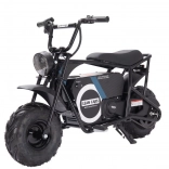 Das elektrische Mini-Motorrad FIRESTORM ist mit einem robusten schwarzen Rahmen und einem bequemen Sitz ausgestattet, um ein fehlerfreies Fahrerlebnis zu gewährleisten.