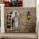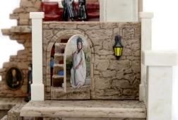 Steinminiatur der Burg mit Säulen und einer kleinen Außenlampe, geeignet zum Ausstellen oder Spielen.