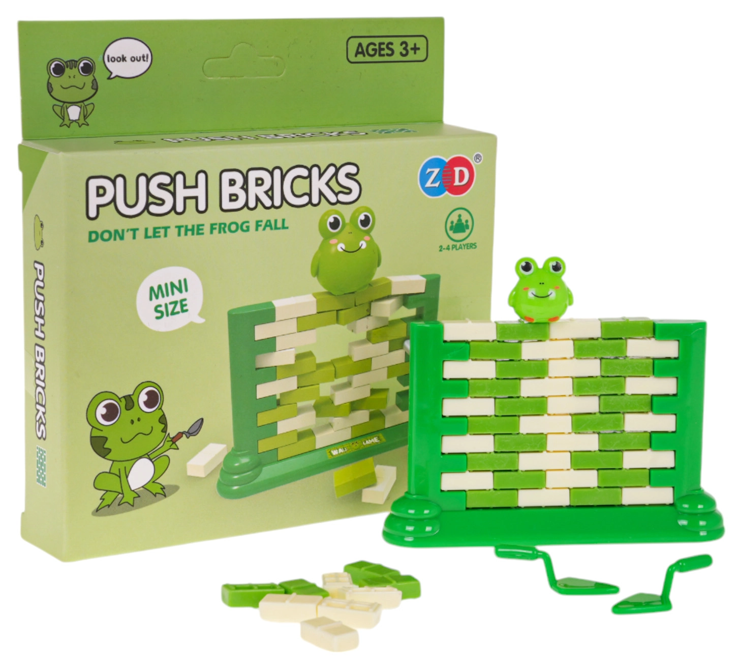 Dieses Geschicklichkeitsspiel ist ideal für Kinder und Erwachsene. Baut die Mauer auf den speziellen Sockel und drückt abwechselnd mit dem beiliegenden Löffel die „Ziegelsteine“ heraus. Achtet auf die Froschfigur oben – wer die Mauer am längsten stehen lässt, gewinnt. Einfache Regeln und Spannung in jedem Zug garantieren schnelles und fesselndes Gameplay.