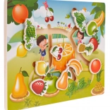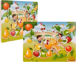 Dieses Holzpuzzle ist für die Kleinsten konzipiert, die die Welt der Spielzeuge spielerisch entdecken möchten. Es enthält farbige Teile, die verschiedene Früchte darstellen und in eine Holzplatte eingesetzt werden.