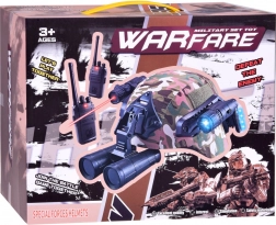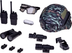 Militärisches Ausrüstungsset mit Helm, Fernglas und Walkie-Talkie