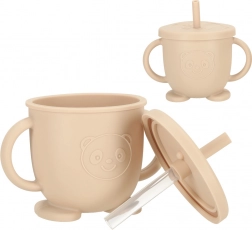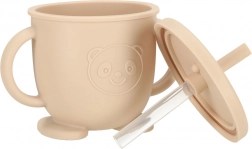 Der Silikonbecher mit Strohhalm und zwei Griffen fördert selbstständiges Trinken und reduziert das Risiko des Verschüttens.