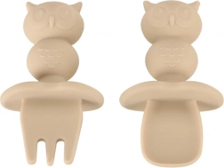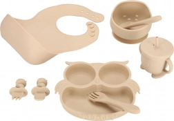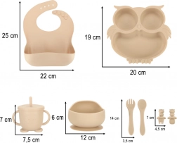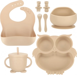 Silikon-Esstisch-Set für Kinder mit Eulenmotiv, 8-teilig, beige