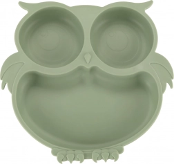 Silikon-Geschirrset für Kinder mit Eulenmotiv in Olivgrün