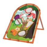 Ein farbiger Ständer mit nummerierten Netzöffnungen motiviert Kinder zu präzisen Würfen und spielerischem Lernen.