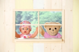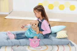 Dem Teddybären passt die meiste Kleidung für BABY born Puppen in Größe 43 cm (außer Schuhe) und er kann deren Accessoires verwenden.