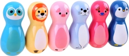 • 6 niedliche Kegel mit Tiermotiven (Schweinchen, Seehund, Pinguin, Löwe, Hund, Eule)