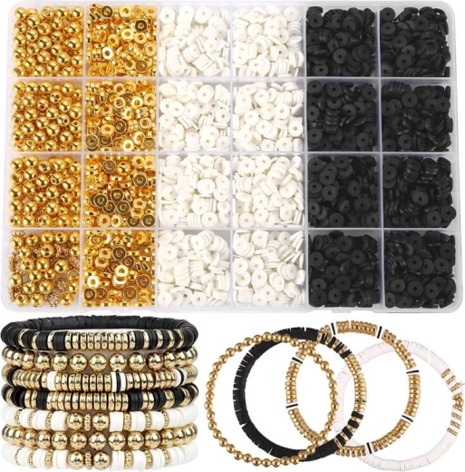 Mit unserem kreativen Set für Perlen können Sie nicht nur Armbänder, sondern auch Halsketten, Ohrringe oder Ringe herstellen – Ihrer Fantasie sind keine Grenzen gesetzt! Klassische Farben wie Weiß, Schwarz und Gold stellen sicher, dass der fertige Schmuck nicht nur einzigartig, sondern auch sehr elegant ist. Handgefertigter Schmuck gehört heute zu den modischsten Accessoires.