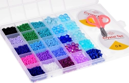 Das Set ist in einer praktischen, transparenten Verpackung verpackt, die wie ein Koffer aussieht und Fächer enthält, die das Mischen der Perlen verhindern. Zum Set gehören auch 2 Spulen transparenter Faden und eine Schere, sodass Sie sofort mit dem Traum-Schmuck beginnen können.