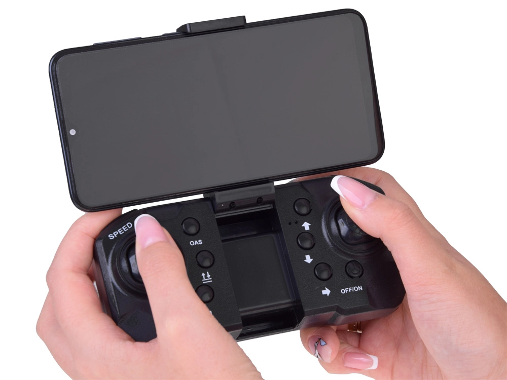 Die Steuerung ist äußerst einfach. Laden Sie den Akku per USB-Kabel, schalten Sie das Gerät ein und koppeln Sie es mit der Fernbedienung. Wenn die Drohne startklar ist, leuchtet die Signallampe dauerhaft.