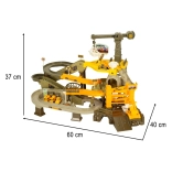 Die erhellende Baustellenbahn mit elektrischen Elementen ist so konzipiert, dass sie den Kindern ein vollständiges Eintauchen in die Rolle des Bauleiters ermöglicht. Dank des automatischen Fahrzeugbewegung können sich die Kinder auf kreative Szenarien konzentrieren und Bauarbeiten leiten.