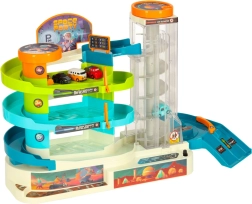 Kinder können beobachten, wie die Autos durch einen elektrischen Aufzug und kurvenreiche Wege auf der Bahn fahren, was die Entwicklung des Sehvermögens unterstützt.