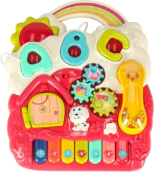 Ein siebenstufiges Mini-Piano, Zahnräder, Buchstaben, die Türchen zur Hundehütte und ein abnehmbares Telefon fördern die Sinne und die Feinmotorik Ihres Kindes.