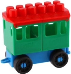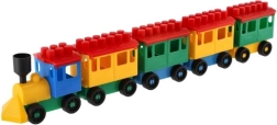 Der Bausatz bietet eine farbenfrohe Lokomotive und fünf Waggons. Diese Farben ziehen die Aufmerksamkeit auf sich und fördern die Kreativität von Kindern.