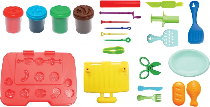 Entdecken Sie eine Welt der Fantasie mit einem Kreativset, das jeden Nachmittag in ein fröhliches „Grillen“ verwandelt. Dank des Grills mit Formen und Zubehör können Kinder eigene „Hamburger“, „Spieße“ und weitere Leckereien herstellen und dabei Feinmotorik und Vorstellungskraft fördern. Eine Farbmischanleitung auf der Verpackungsrückseite hilft, noch realistischere Farbtöne zu erzeugen.