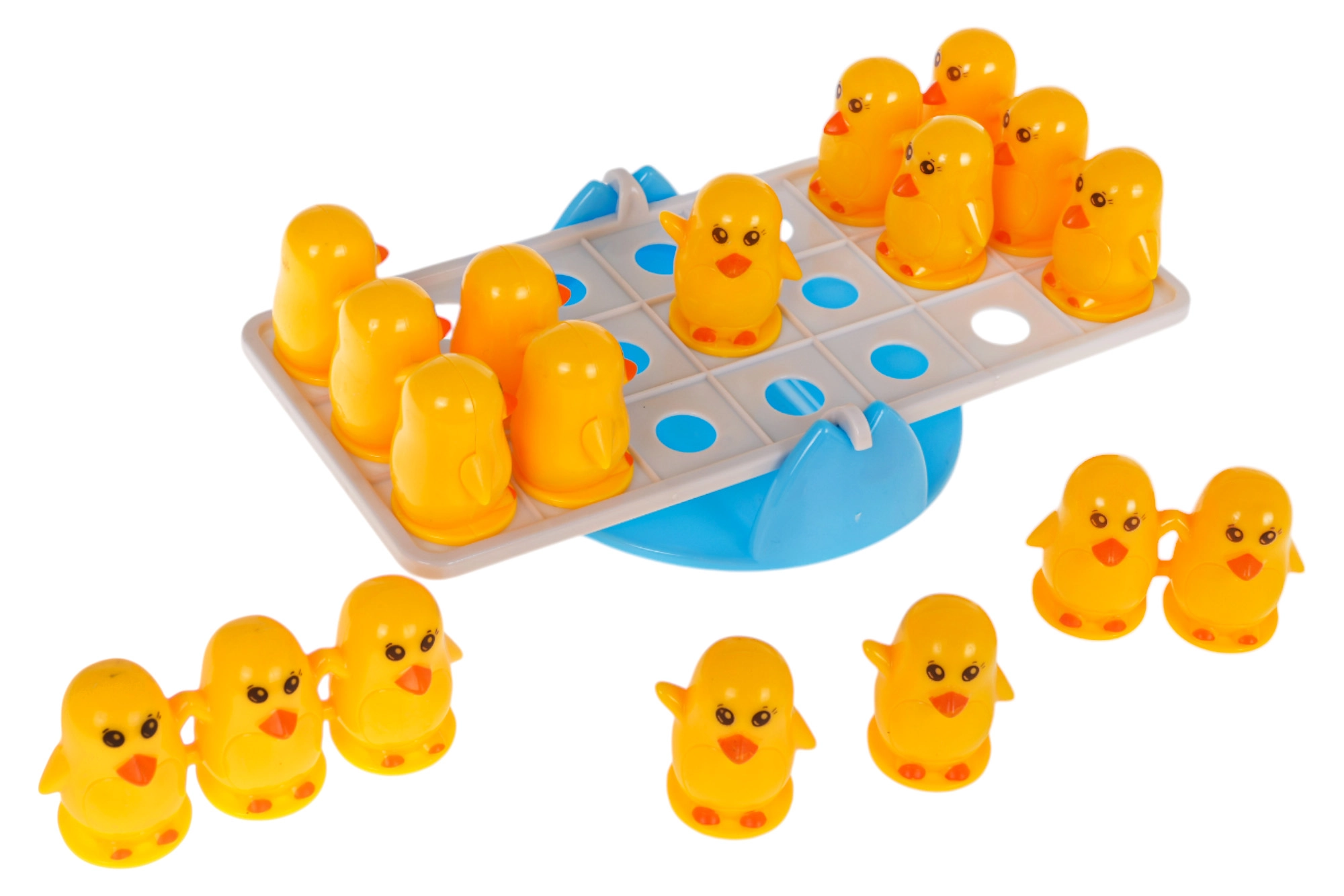 Dieses Balance-Spiel mit Entenfiguren unterstützt die kindliche Vorstellungskraft und trainiert die Feinmotorik. Die Aufgabe besteht darin, Entenfiguren auf beide Seiten der Basis zu platzieren, sodass das Gleichgewicht erhalten bleibt. Kinder lernen dabei ganz natürlich das Vergleichen von Gewichten, Addieren und Subtrahieren und verstehen einfache physikalische Prinzipien.