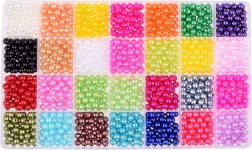 Kreieren Sie Ihren einzigartigen Schmuck mit unserem Perlenset, das sich perfekt für die Herstellung von Halsketten, Ohrringen oder Ringen eignet. Die Perlen haben eine glatte Oberfläche, die das Licht reflektiert und weich schimmert. Sie sind in einer breiten Palette an Farben erhältlich, von klassischem Weiß über Pastelltöne in Rosa, Blau, Grün bis hin zu intensiven Farben wie Violett, Rot oder Grün.