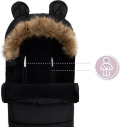 Der MoMi Winter-Fußsack ist einfach zu benutzen – er verfügt über einen Reißverschluss, der das Hineinlegen des Kindes in den Schlafsack erleichtert. Er hat universelle Farben, die zu anderem Kinderzubehör passen. Er ist mit Kunstfell gefüttert und hat niedliche, dekorative Öhrchen, die dem Produkt Charakter verleihen. Das Kunstfellfutter ist abnehmbar.