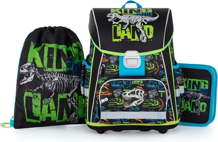 Schulranzen: Der Schulranzen der Reihe Premium ist ergonomisch geformt und sorgt für einen korrekten Sitz auf dem Rücken. Das verstärkte Rückenteil und die innere Verstärkung halten die Form des Ranzens stabil. Die Polsterung besteht aus einem angenehmen, atmungsaktiven Material, breite, weich gepolsterte Träger sind so gestaltet, dass sie perfekt anliegen und die Schultern des Kindes gleichmäßig belasten. Der Ranzen besteht aus einem geräumigen Hauptfach, in das alle Schulutensilien für Kinder der 1. und 2. Klasse bequem passen. Der Boden des Ranzens ist aus robustem Material gefertigt und schützt den Inhalt vor Umkippen und Ausschütten. Verschluss mit Sicherheitsschnalle. Die vordere kleine Tasche ist für die Brotzeit vorgesehen, zahlreiche reflektierende Elemente erhöhen die Sichtbarkeit des Ranzens. Volumen: 28 l. Traglast: 8 kg. Beutel: Turnbeutel aus hochwertigem Material. Der Beutel wird durch Zusammenziehen der Kordeln geschlossen. Geeignet für die Schule, den Sport und weitere Freizeitaktivitäten von Kindern. Federmäppchen: Einlagiges Schulmäppchen mit zwei Klappen, ohne Inhalt. Gummischlaufen zur Fixierung von Schreibutensilien. In der inneren Klappe befindet sich eine transparente Folie für den Stundenplan.