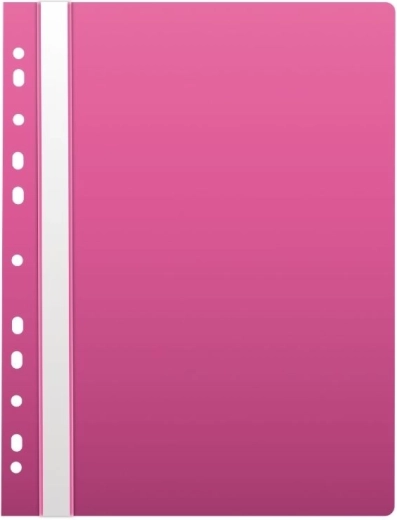 Dieser Schnellhefter ist die perfekte Lösung für alle, die ihre Dokumente übersichtlich und sicher aufbewahren möchten. Die Vorderseite ist transparent mit einer Stärke von 120 Mikronen, wodurch Sie den Inhalt leicht sehen können, ohne sie öffnen zu müssen. Die Rückseite ist kräftig rosa, undurchsichtig und stärker, mit einer Dicke von 180 Mikronen, was für Haltbarkeit und Stabilität sorgt. Ein beschreibbarer Streifen ist vorhanden, der eine schnelle und einfache Kennzeichnung des Inhalts ermöglicht. Die Bindekapazität beträgt bis zu 2 cm, sodass eine größere Menge an Papier aufgenommen werden kann.