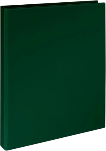 Der A4 Classic Ordner in grüner Farbe mit durchsichtigem Fach auf der Vorderseite und dem Rücken, ausgestattet mit 4-Ring-Mechanik für einfaches Einlegen von Dokumenten.