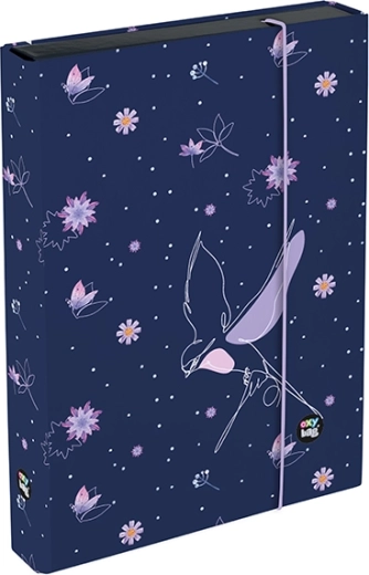 Dieser Box für Hefte im Format A5 ist ideal für den täglichen Transport von Schulmaterialien. Er hat eine robuste Laminatoberfläche und einen Gummibandverschluss, der sicherstellt, dass der Inhalt fest verstaut ist. Die Rückenbreite beträgt 3,5 cm, was ausreichend Platz für viele Hefte und Dokumente bietet.
