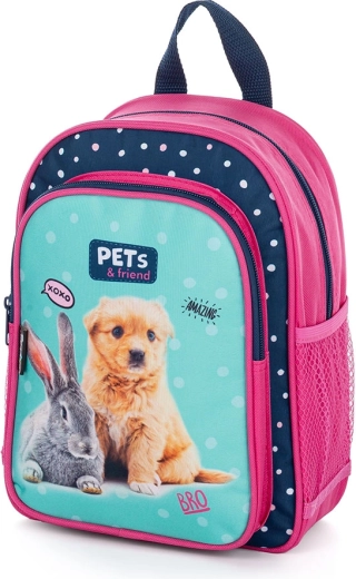 Die durchdachte Fächeraufteilung sorgt für Übersicht und leichten Zugriff. Das Hauptfach bietet Platz für Kleidung oder ein Spielzeug, die kleinere Tasche ist perfekt für die Brotzeit und die Seitentaschen halten die Trinkflasche sicher.