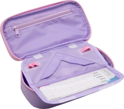 Praktisches und geräumiges Schuletui für die Sekundarstufe und ältere Schüler. Es bietet robuste Reißverschlüsse, eine verschließbare Innentasche, ein Linealfach und eine Klappe mit sechs Schlaufen für Schreibutensilien. Ideal für die übersichtliche Aufbewahrung all dessen, was du für die Schule brauchst.